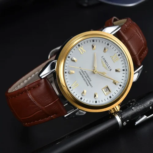 Men automatic watch date simple mechanical watches waterproof leather mens watch boyfriend gift