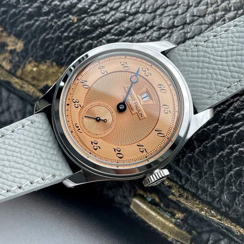 Spot goods NEW Pierre Paulin Jumping Hour Men Watch Salmon Dial Automatic St17 Mechanical Watch Vintage Date Window 38mm